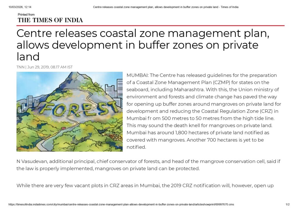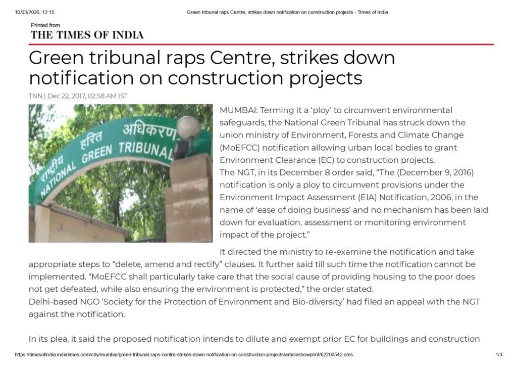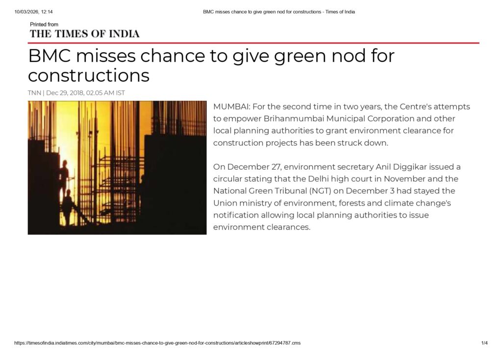 BMC misses chance to give green nod for constructions Green tribunal raps Centre, strikes down notification on construction projects Centre releases coastal zone management plan, allows development in buffer zones on private land